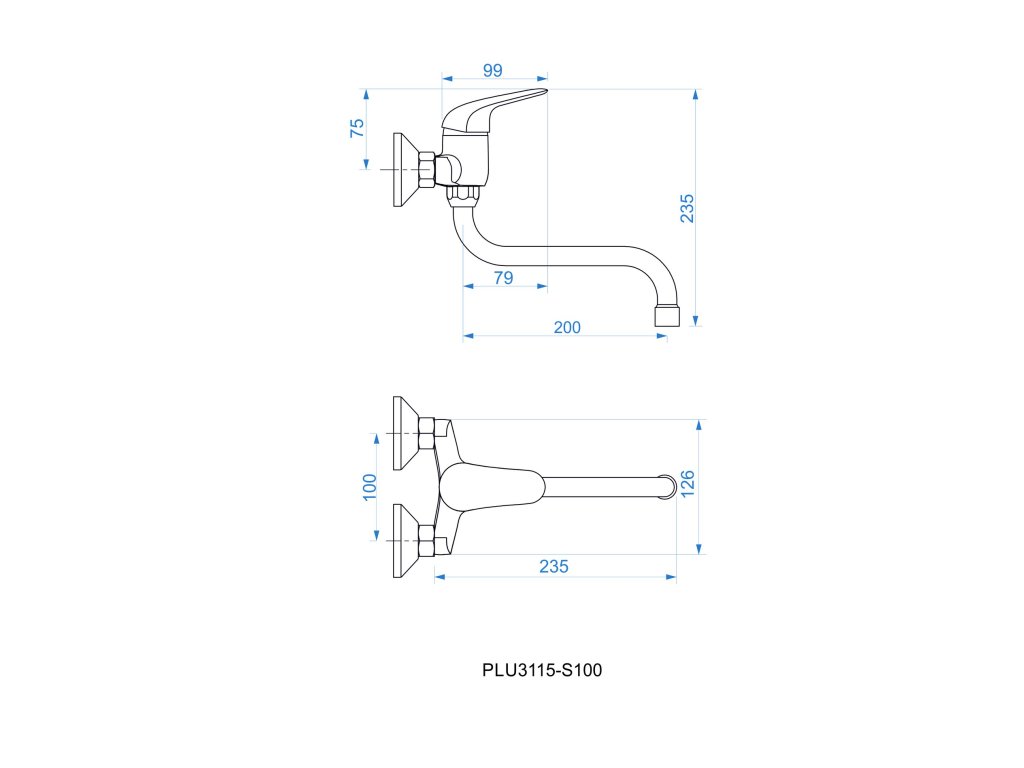 PLU3115-S150 - PLUTO, dřezová stěnová baterie, rozteč 150 mm, kulaté ramínko 200 mm