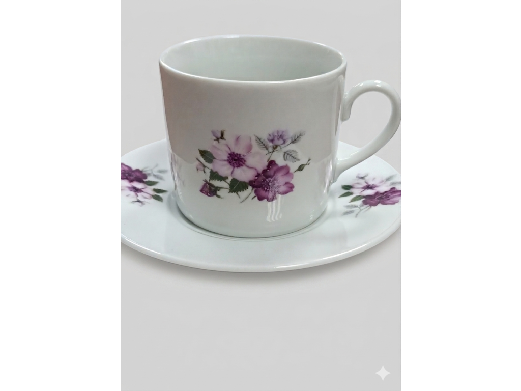 Šálek + podšálek 155 ml Nicolette- Fialový a růžový květ