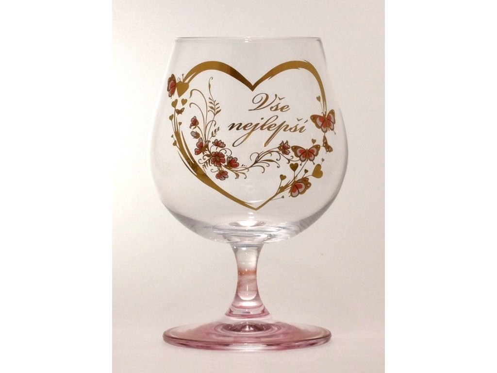 Sklenice Brandy výročí "Vše nejlepší" - růžová