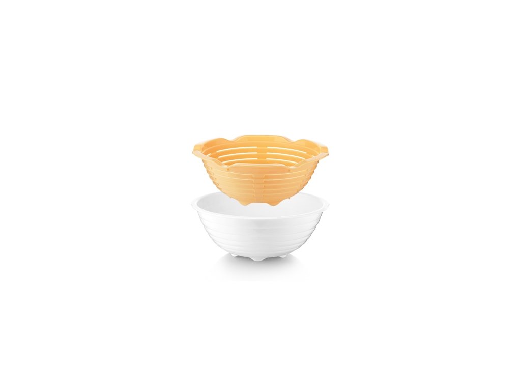 Čerstvý domácí chléb s křupavou kůrkou je opravdová pochoutka. Proto mu věnuje TESCOMA zvláštní pozornost a pro jeho blaho vytvořila praktickou ošatku s miskou. Ta mu dá krásný tvar bochníku s typickým rýhovaným povrchem. V ČEM JE OŠATKA S MISKOU NA DOMÁCÍ CHLÉB VÝJIMEČNÁ? Šikovná souprava ošatky a misky z oblíbené linie DELÍCIA vám usnadní kynutí domácího kulatého chleba a dá mu dokonalý profesionální tvar. JAKÉ MÁ OŠATKA S MISKOU NA CHLÉB DALŠÍ VÝHODY? •oba díly jsou vyrobeny z prvotřídního odolného plastu •ošatka je perforovaná a přebytečná mouka z kynoucího bochníku je tak zachycena v misce •s miskou s bochníkem lze během kynutí snadno manipulovat •plastová ošatka se, na rozdíl od ratanových či proutěných, snadno čistí, lze ji mýt v myčce a i při častém opužívání nezachází •praktická odměrka na vnitřní straně misky je skvělá pro založení a krmení domácího kvásku •podrobný návod a originální recepty pro přípravu různých druhů žitno-pšeničného chleba jsou součástí balení Materiál: prvotřídní odolný plast. Mytí v myčce: ano. Záruka: 3 roky.Doplňkové parametry