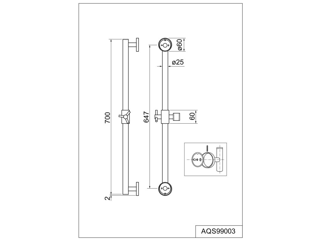 SPRING, sprchová tyč průměr 25 mm, délka 700 mm, kovová