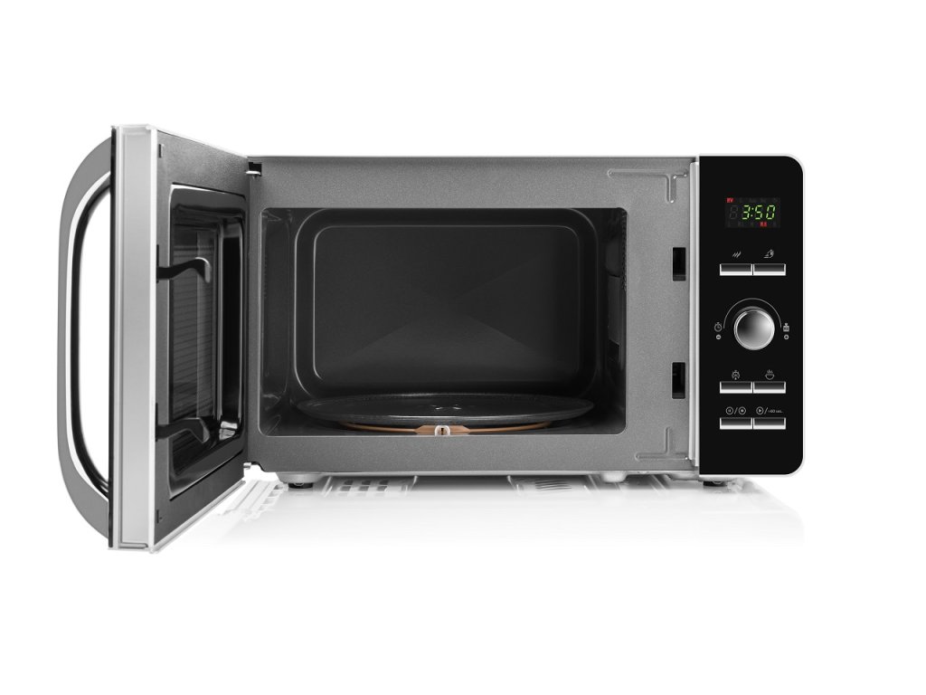 Ovládání mikrovlnky je díky digitálnímu displeji maximálně přehledné a intuitivní. Časovač je nastavitelný až do 60 minut a máte možnost využít i funkce odloženého startu. V době nečinnosti pak displej slouží jako praktické hodiny. O dokončení ohřevu vás informuje zvuková signalizace, Otočný skleněný talíř se postará o rovnoměrný ohřev a díky vnitřnímu osvětlení máte neustálý přehled o jeho průběhu.