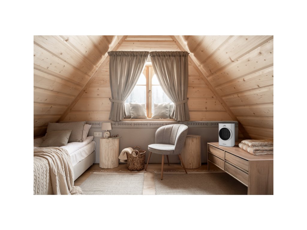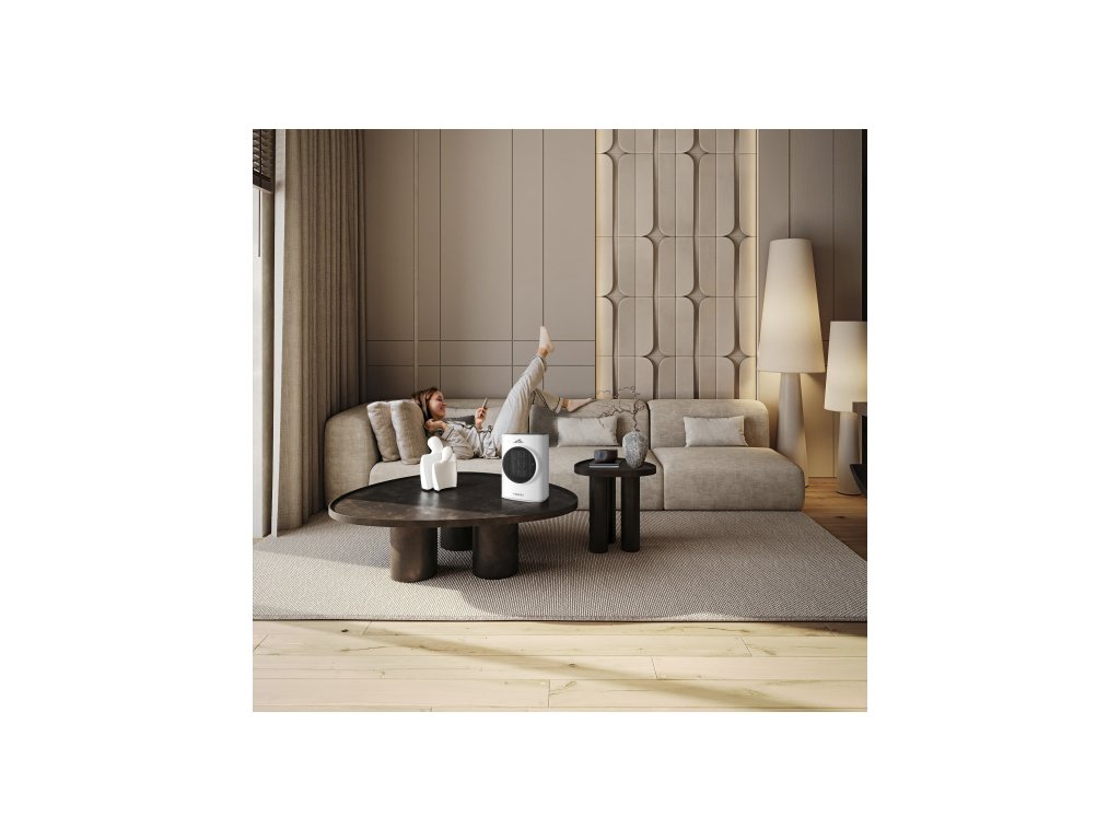 Ať už potřebujete jen lehce přitopit, nebo pořádně zahřát, můžete si vybrat ze dvou výkonových stupňů – 750 W a 1500 W. Díky automatickému režimu si nastavíte požadovanou teplotu (od 10 °C po 30 °C) a ventilátor už se o zbytek postará sám. Časovač umožní, aby se sám vypnul, až vy budete pod dekou usínat.