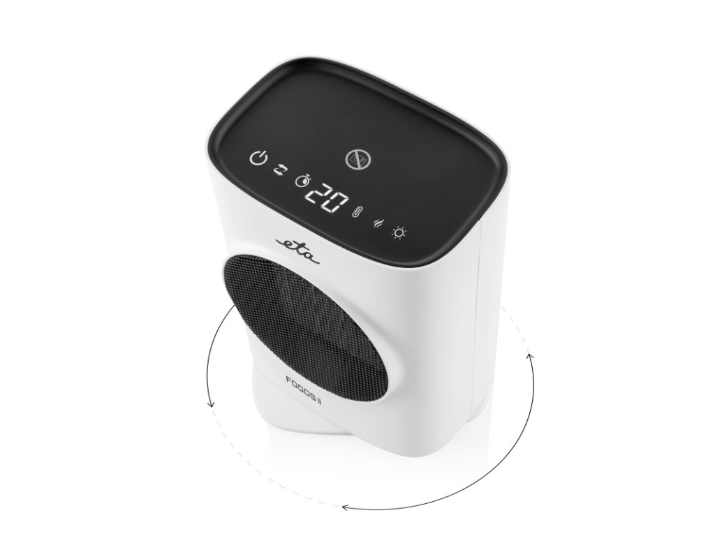 S délkou kabelu 1,5 metru ho snadno umístíte, kam potřebujete. Ať už doma v ložnici, pracovně, nebo víkendově na chalupě. Teplovzdušný ventilátor ETA Fogos II s PTC topnými tělesy je praktický pomocník, který vás v zimě nenechá na holičkách.