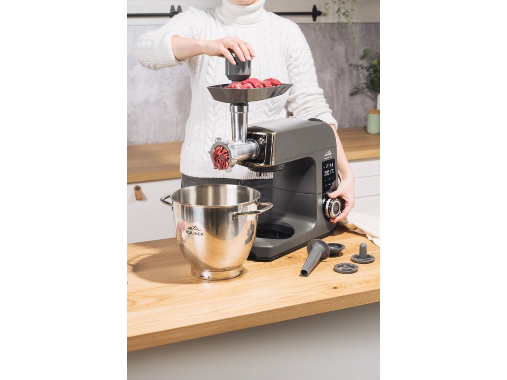 ETA Kuliner II Max je expert i na mletí masa. Jeho odolný masomlýnek o průměru 62 mm se postará o namletí masa na burgery, čevapčiči i domácí sekanou a ke kupovanému mletému masu už se nebudete chtít vracet.