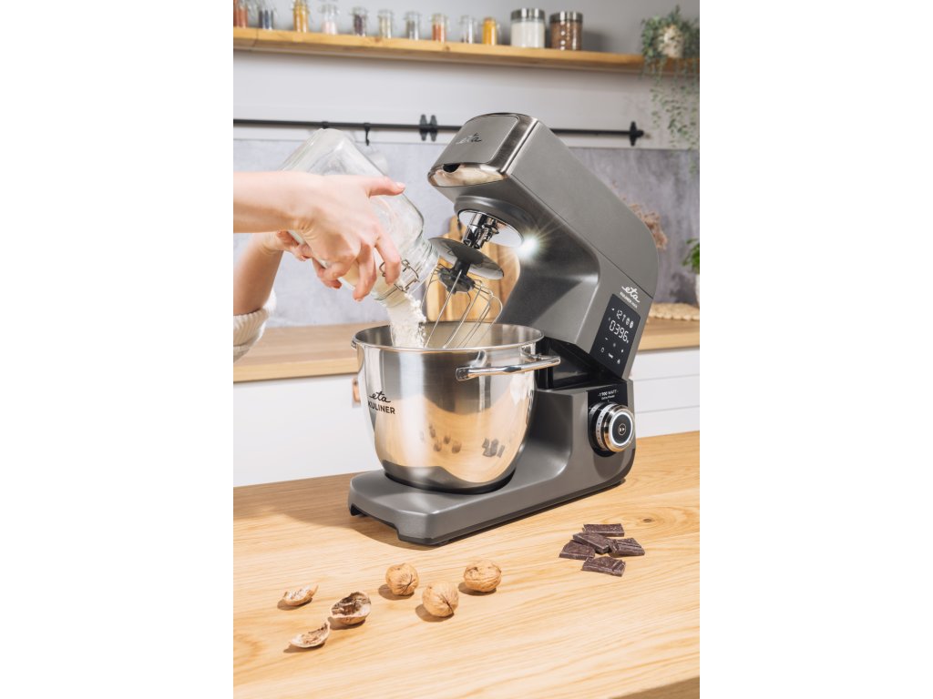 Nejen pro pečení vám přijde vhod integrovaná váha a jako jediný z kuchyňských robotů ETA má v těle přímo zabudovanou vakuovačku. Robotu nechybí ani nastavitelný časovač, funkce PULSE ani pojistky pro bezpečný provoz. V balení najdete celou škálu praktického příslušenství včetně lisu na ovoce, mlýnku na mák či brousku na nože.