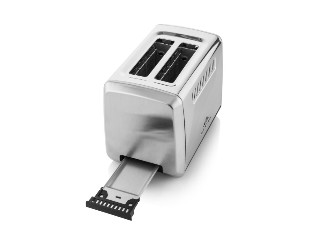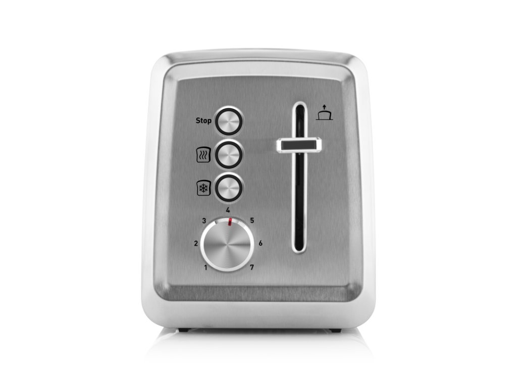 Topinkovač je navíc konstruován tak, aby vám jeho používání život usnadnilo a ne komplikovalo – ohřev můžete kdykoliv ukončit tlačítkem STOP, drobky se shromažďují ve vyjímatelné nádobce a napájecí kabel můžete navinout do prostoru k tomu určenému. Příkon topinkovače je 850 W.
