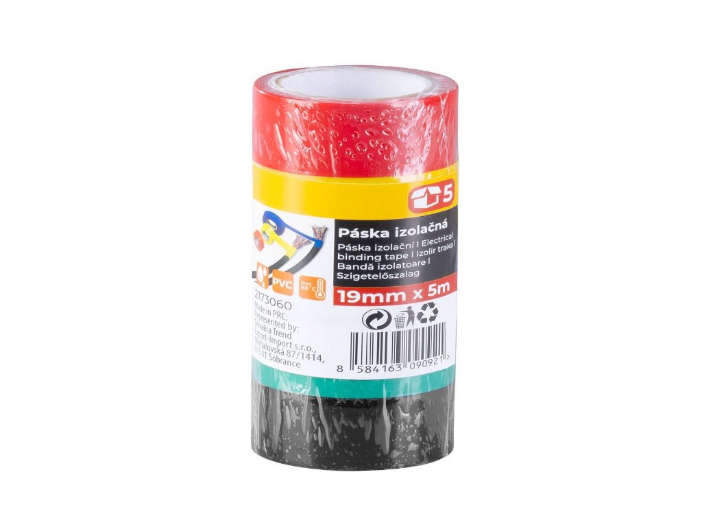 Páska izolační různé barvy, PVC, 19mm, 5m, 5ks v balení, cena za 1 balení