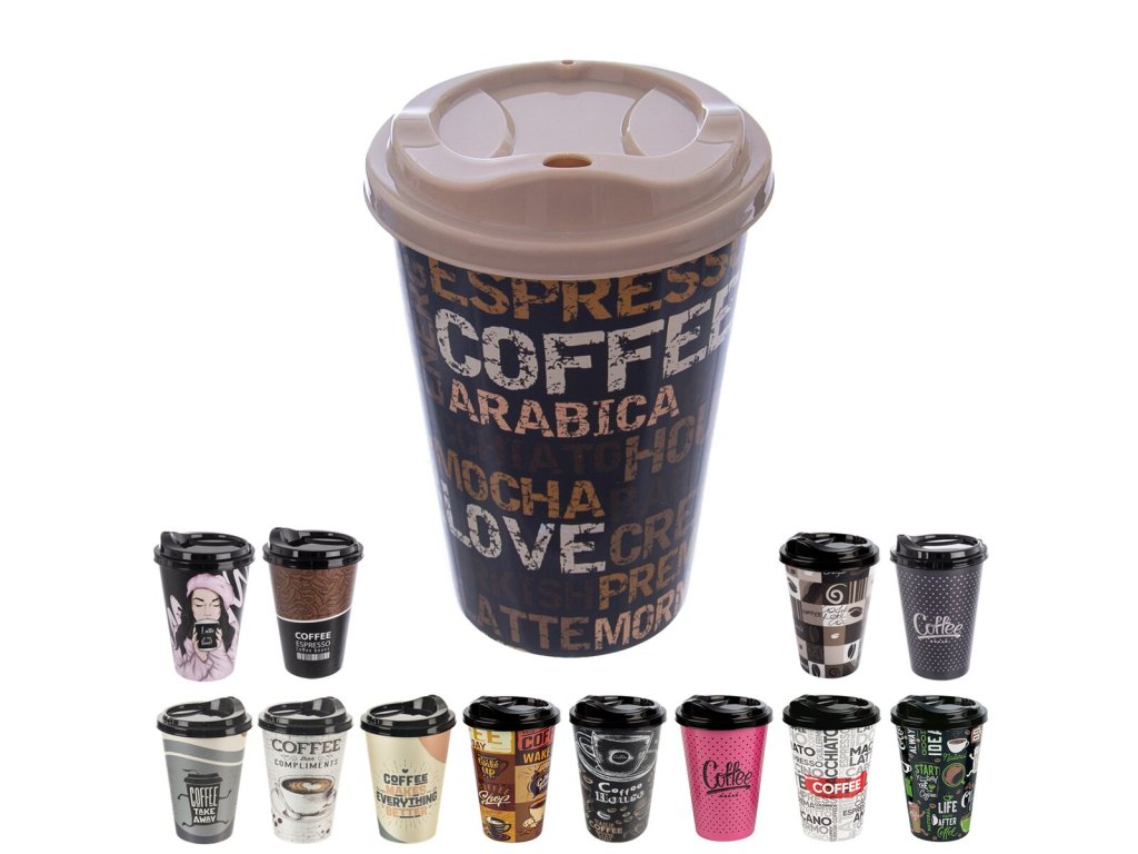 Pohár na kávu s víčkem. Kávu si tak můžete vzít s sebou na cesty, do auta... Materiál: plast. Rozměry: objem 0,45 l, pr.8,5 cm, v. 13,5 cm. Je vhodný do MVT bez víčka, není vhodný do myčky. Použití od -10 °C do +95 °C.