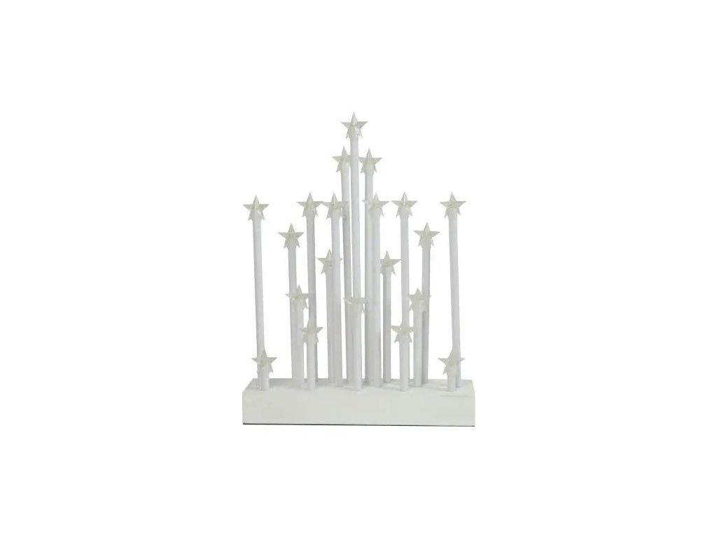 Svícen vánoční el.20 svíček LED, hvězda, dřev.BÍ, 22,3x29,5x5cm, do zásuvky