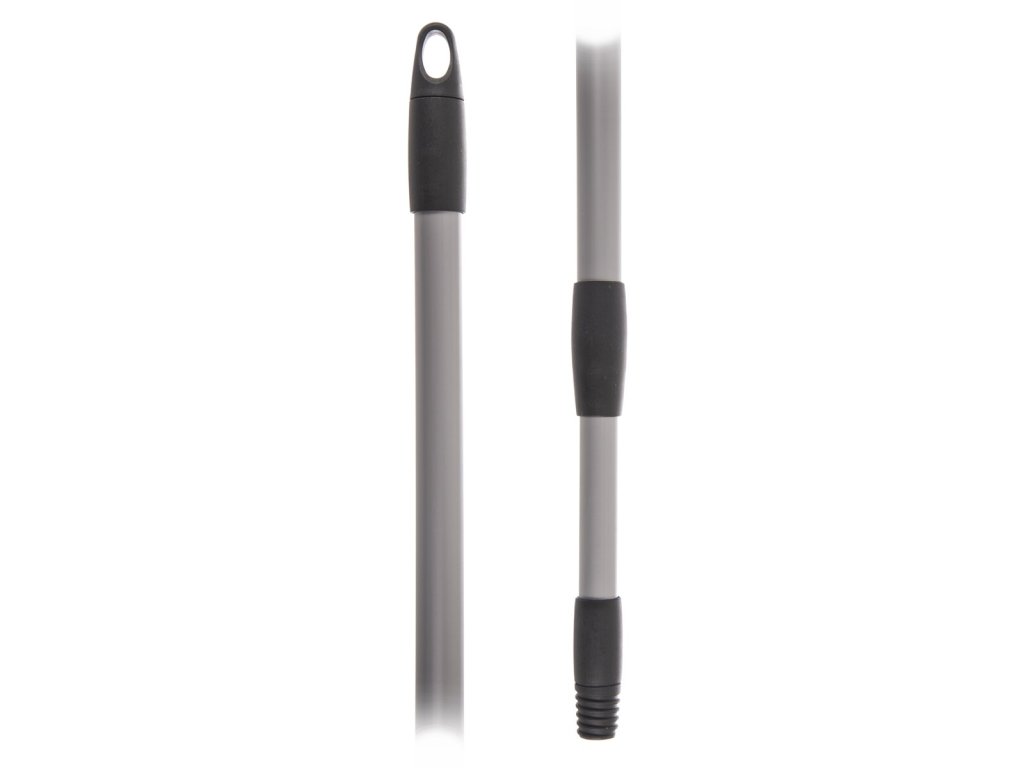 Teleskopická hůl s hrubým závitem. Možnost zavěšení. Materiál: plast, kov. Rozměry: 75 až 130 cm.