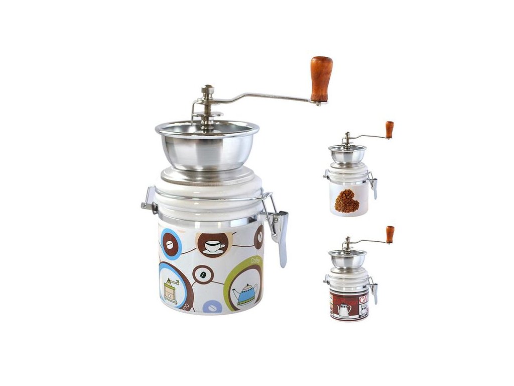 Ruční mlýnek s moderním motivem kávy s uzavíratelným kontejnerem. Tělo mlýnku, které má patentní uzávěr je vyrobeno z porcelánu, mlecí mechanismus z nerezových slitin a ergonomická rukojeť ze dřeva. Lze nastavovat libovolnou hrubost mletí. Mlýnek je vhodný také jako dekorace.