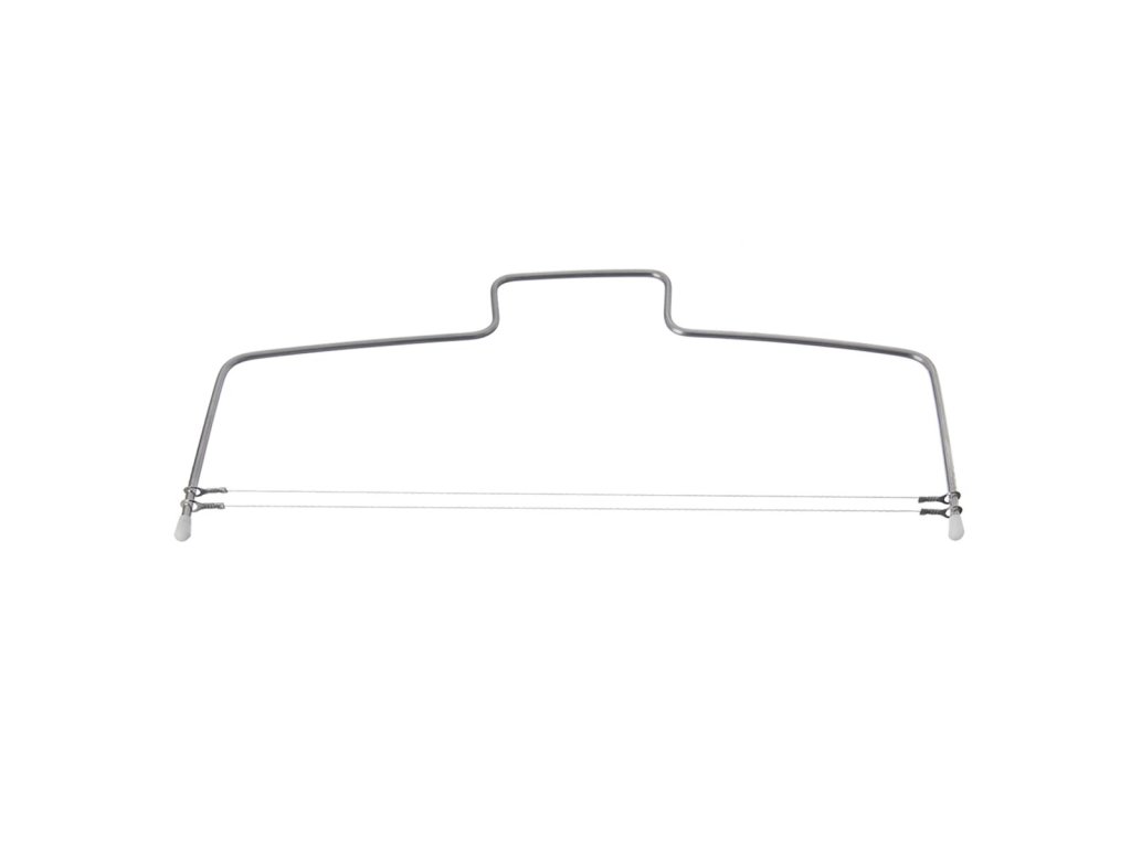Krájecí struna na dort Vám pomůže přesně a navíc velmi snadno prokrojit upečený dortový korpus. Můžete si ji nastavit několika výšek. Materiál: nerezová ocel. Rozměry: d. struny 29 cm, celková š. kráječe 33 cm. Nastavitelná výška krájení od 1,6 do 6,2 cm.