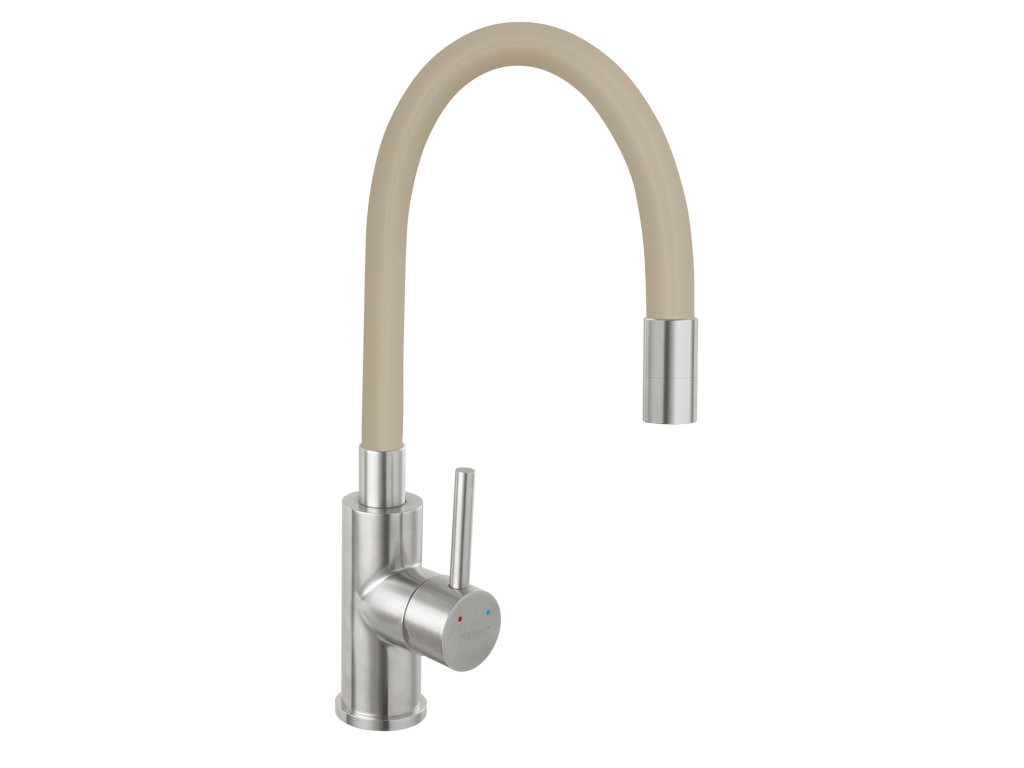 Dřezová stojánková baterie s elastickým ramenem, béžová-nerez