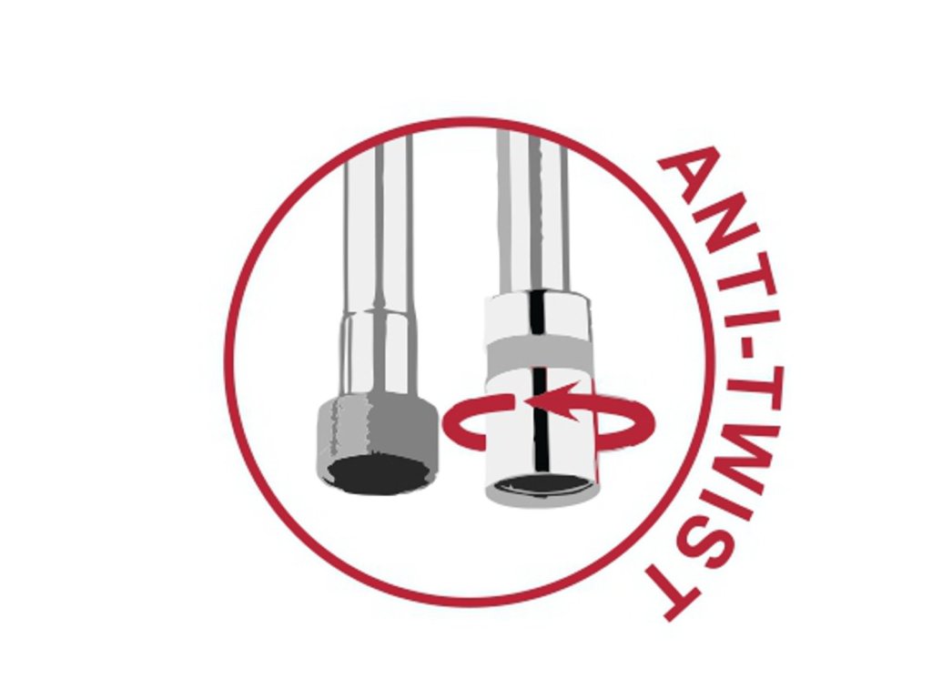 ANTI TWIST- zabraňuje smotání sprchové hadice při sprchování. Je zabudován v koncovce sprchové hadice (převlečné matici). Při jakékoli pozici hadice, kdy by hrozilo její smotání se v koncovce vybavené systémem ANTI TWIST hadice spolehlivě protočí a srovná.