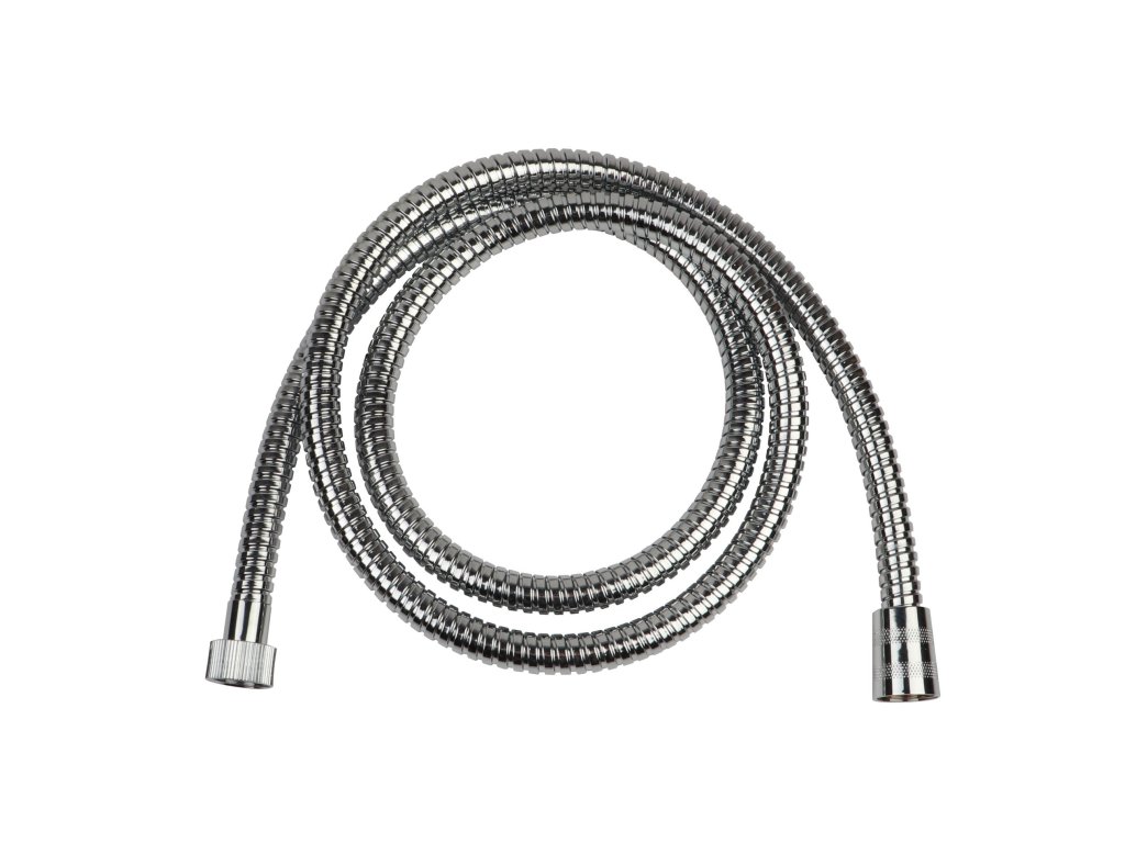 Sprchová hadice se třemi vrstvami opletu (leštěná nerezová ocel - nylon - pryž) a kovovými převlečnými maticemi. Hadice se montuje mezi vodovodní baterii a sprchovu hlavici (sprchu). Oplet kryjící pryžové jádro hadice značně zvyšuje její užitnou hodnotu a odolnost, zejména když se skládá z více vrstev. |