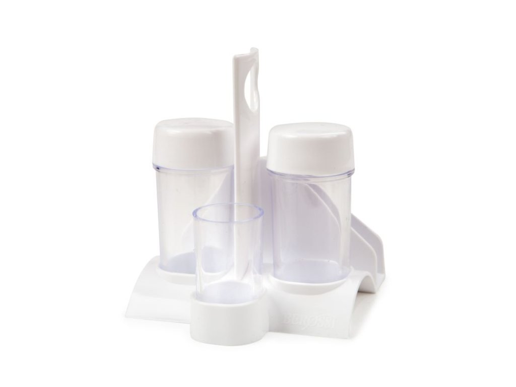 slánka+pepř. 3-dílná RONDO bílá, stojánek 10,3x10,3x11,7cm
