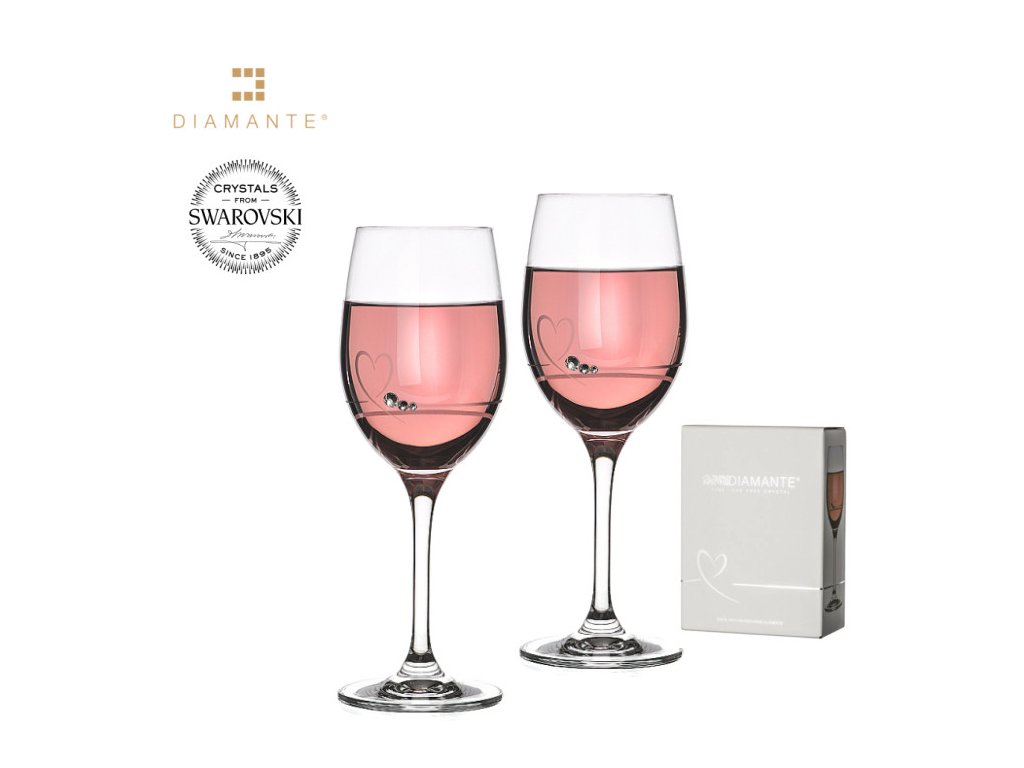 Pár pohárů na víno v darkovém obale. Motiv se srdíčky je zdobený pravými Swarovski® Elements.