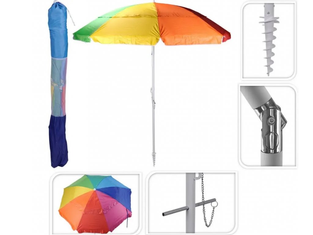Slunečník 220 cm, s kloubem a vrutem, duhové barvy.