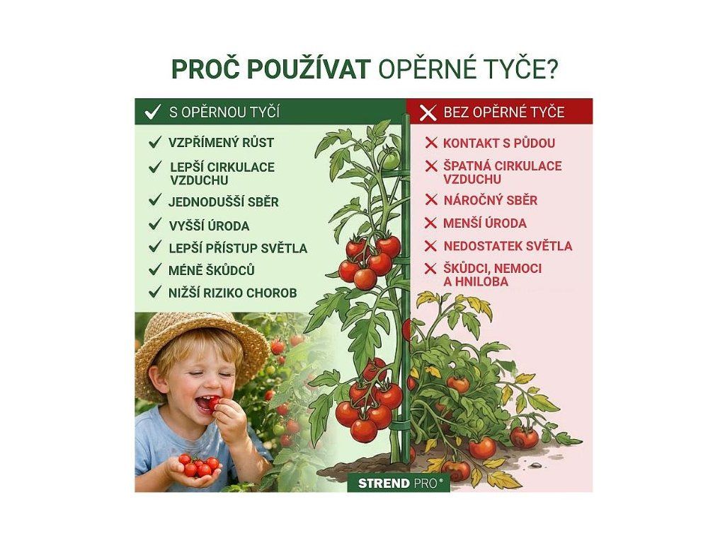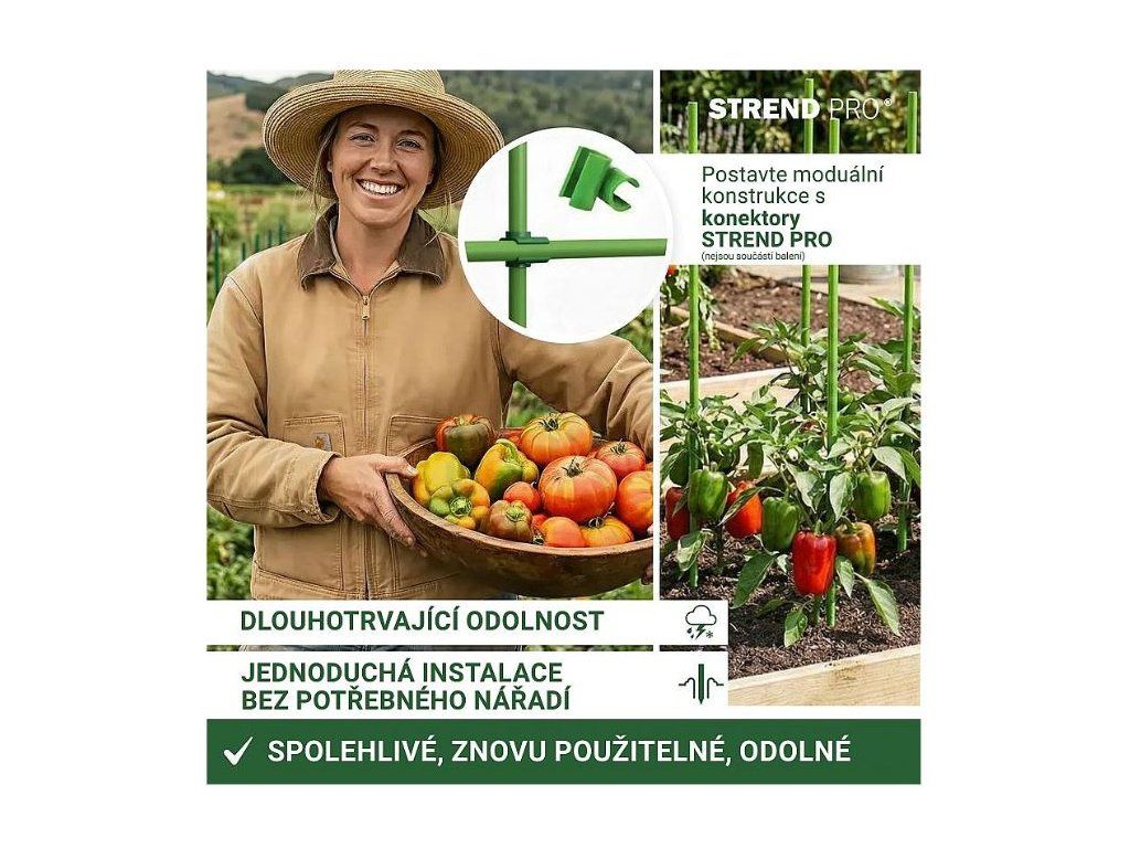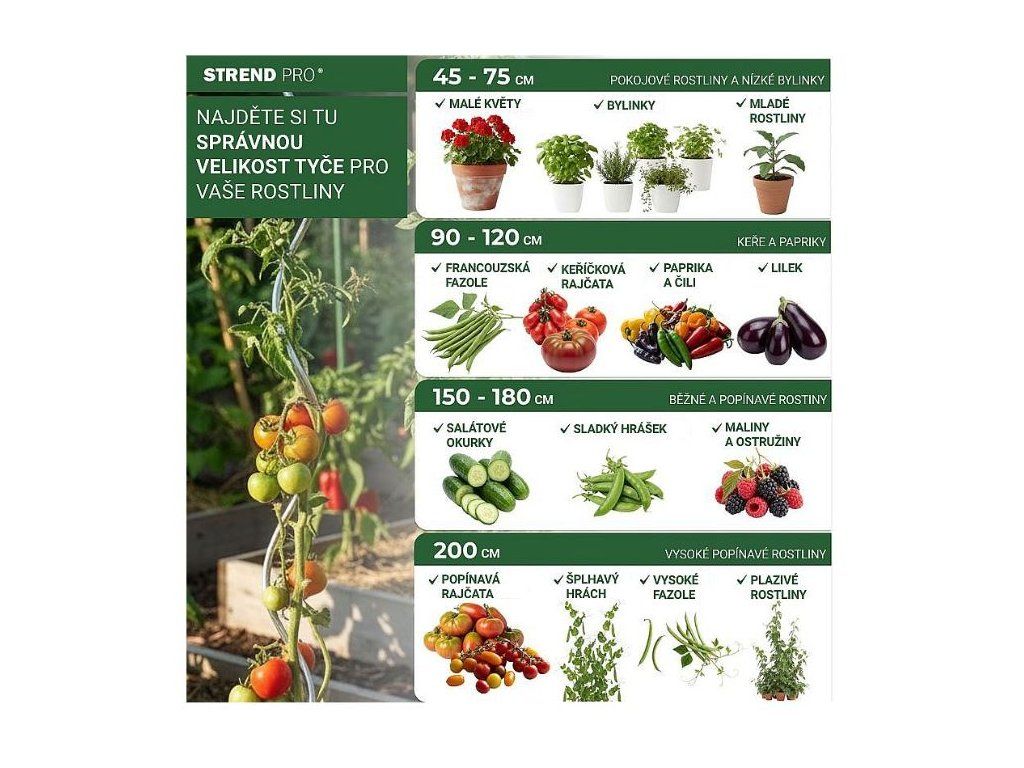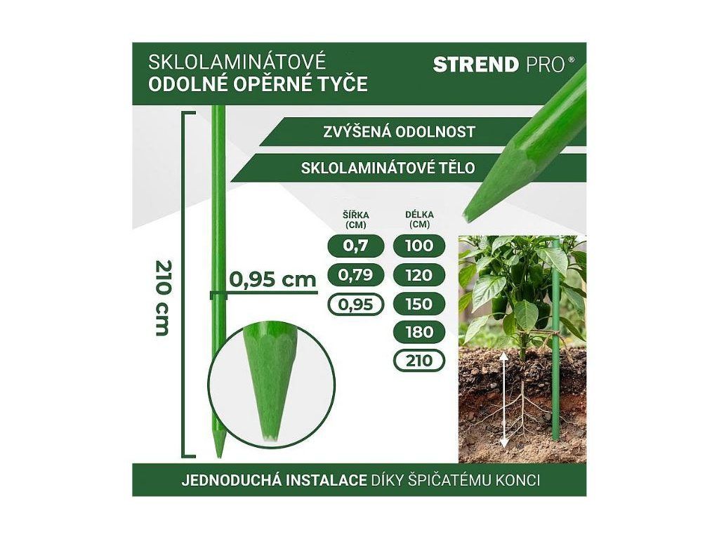 Sklolaminátová zelená opěrná tyč délky 210 cm je vhodným doplňkem pro pěstitele, kteří chtějí ochránit jejich plodiny před zlomením.